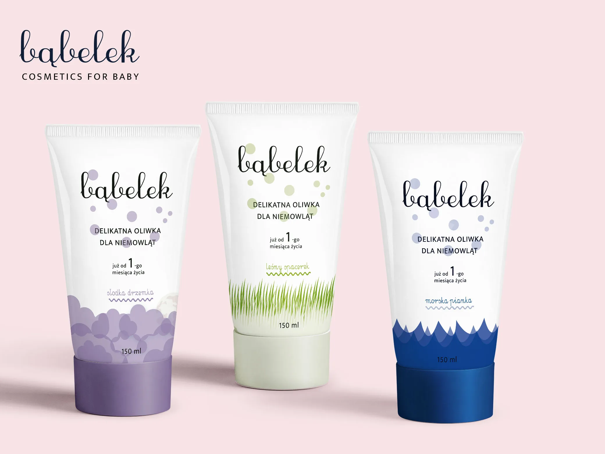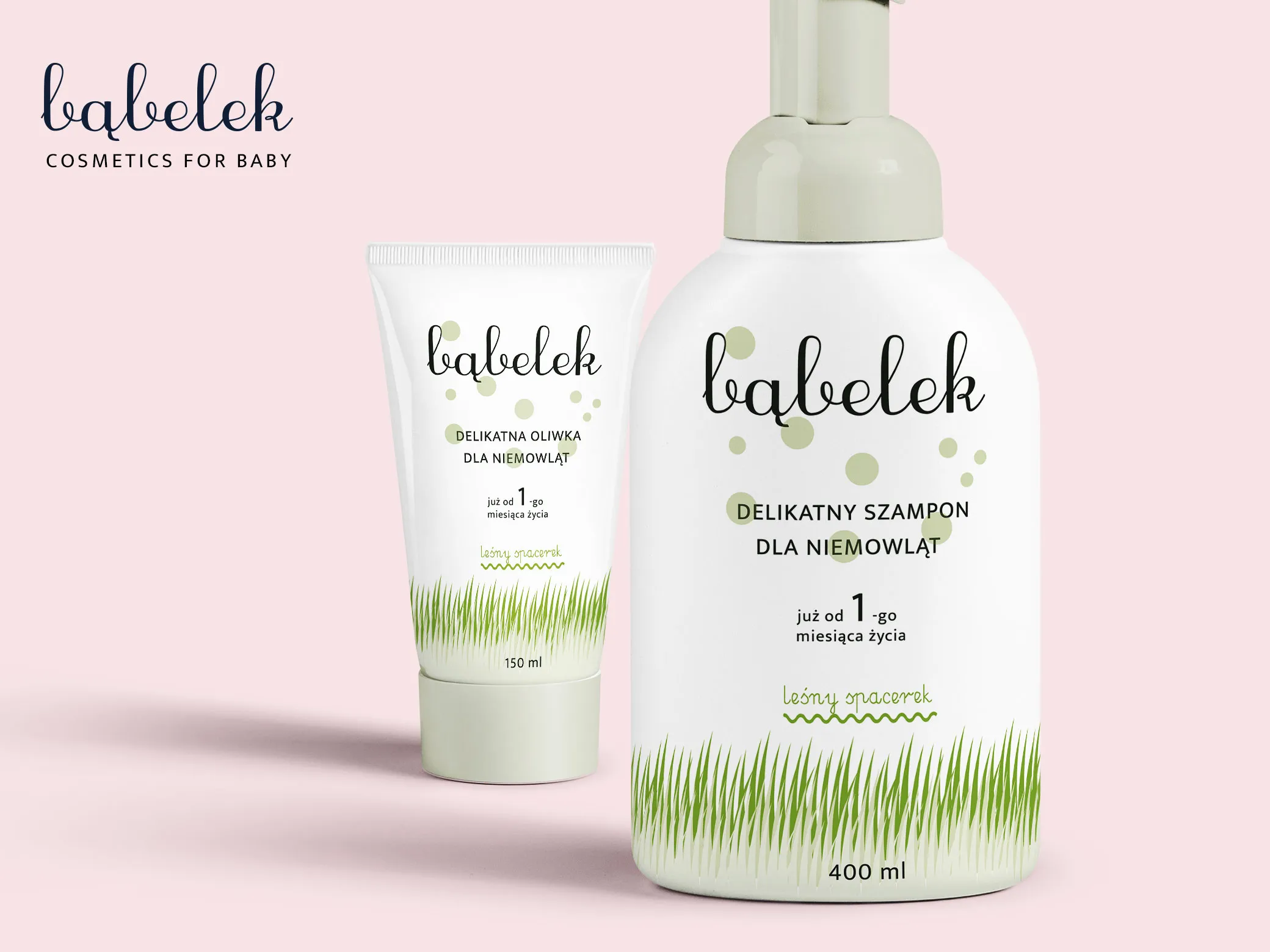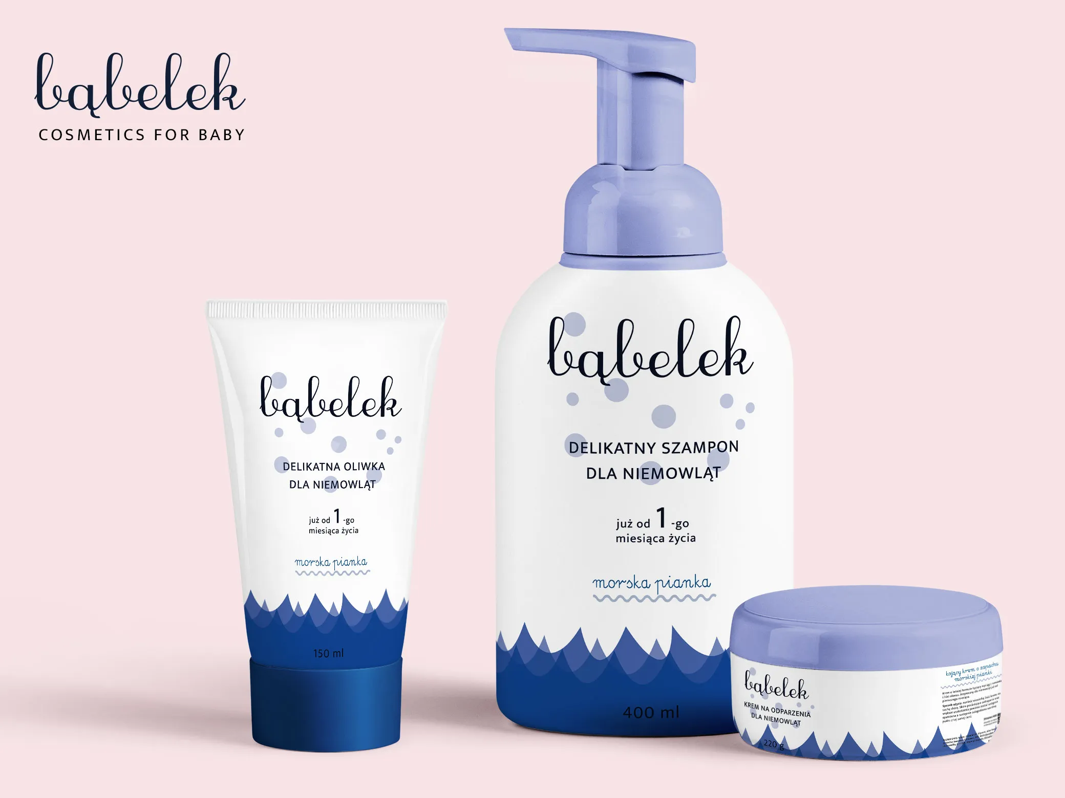 When this concept was created, awareness of the ingredients of cosmetics and their impact on the environment was just emerging. In hindsight, I think that the light tone suggesting safety for children's sensitive skin and the minimalist composition have stood the test of time, and I am doubly happy that the initial trend towards delicate natural cosmetics has not remained just a trend but an obvious concern for our health and the condition of the planet. The brand name "Bąbelek" in Polish is a term for a toddler and a bubble of bath foam, which creates a charming play on words and is memorable.
