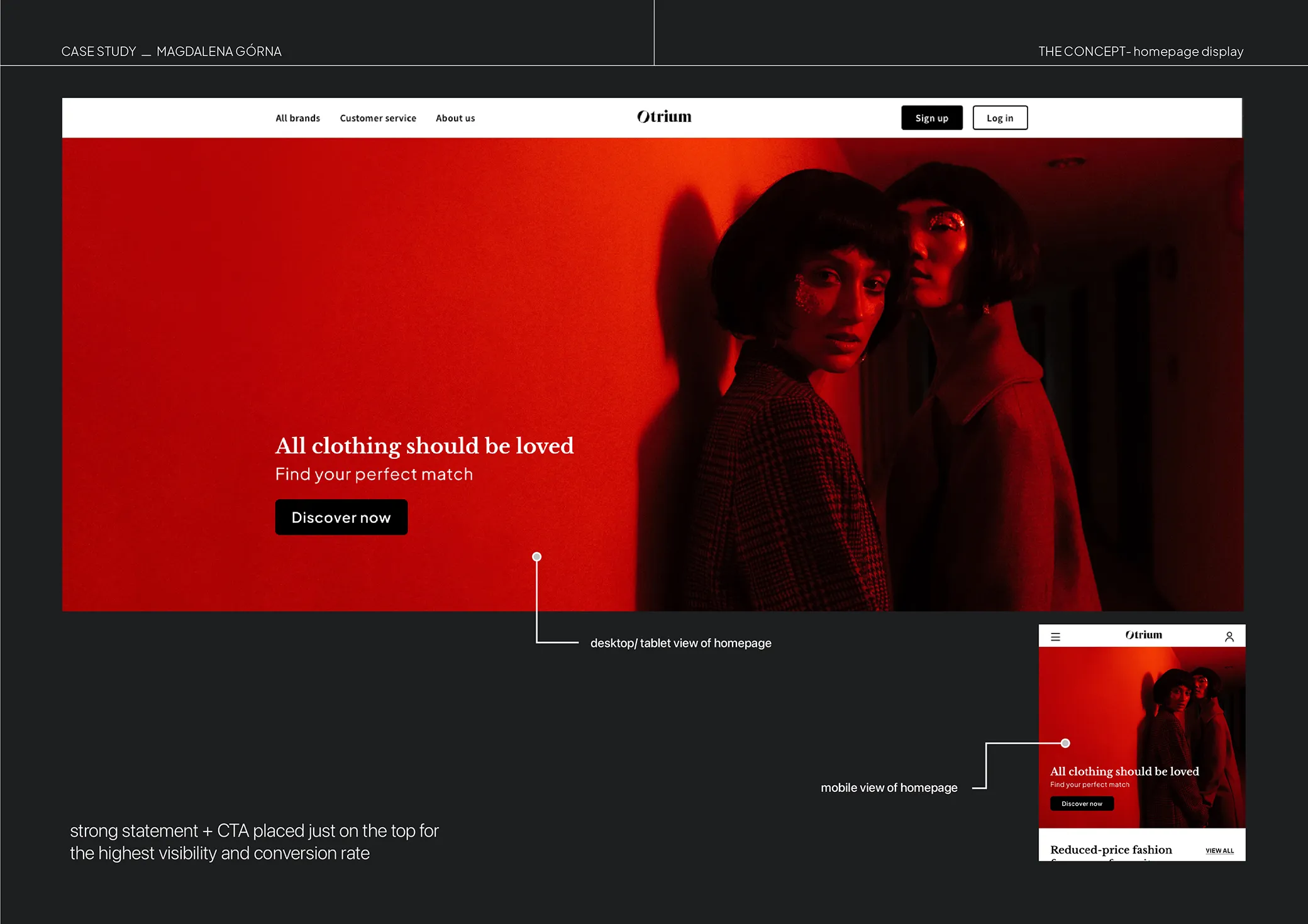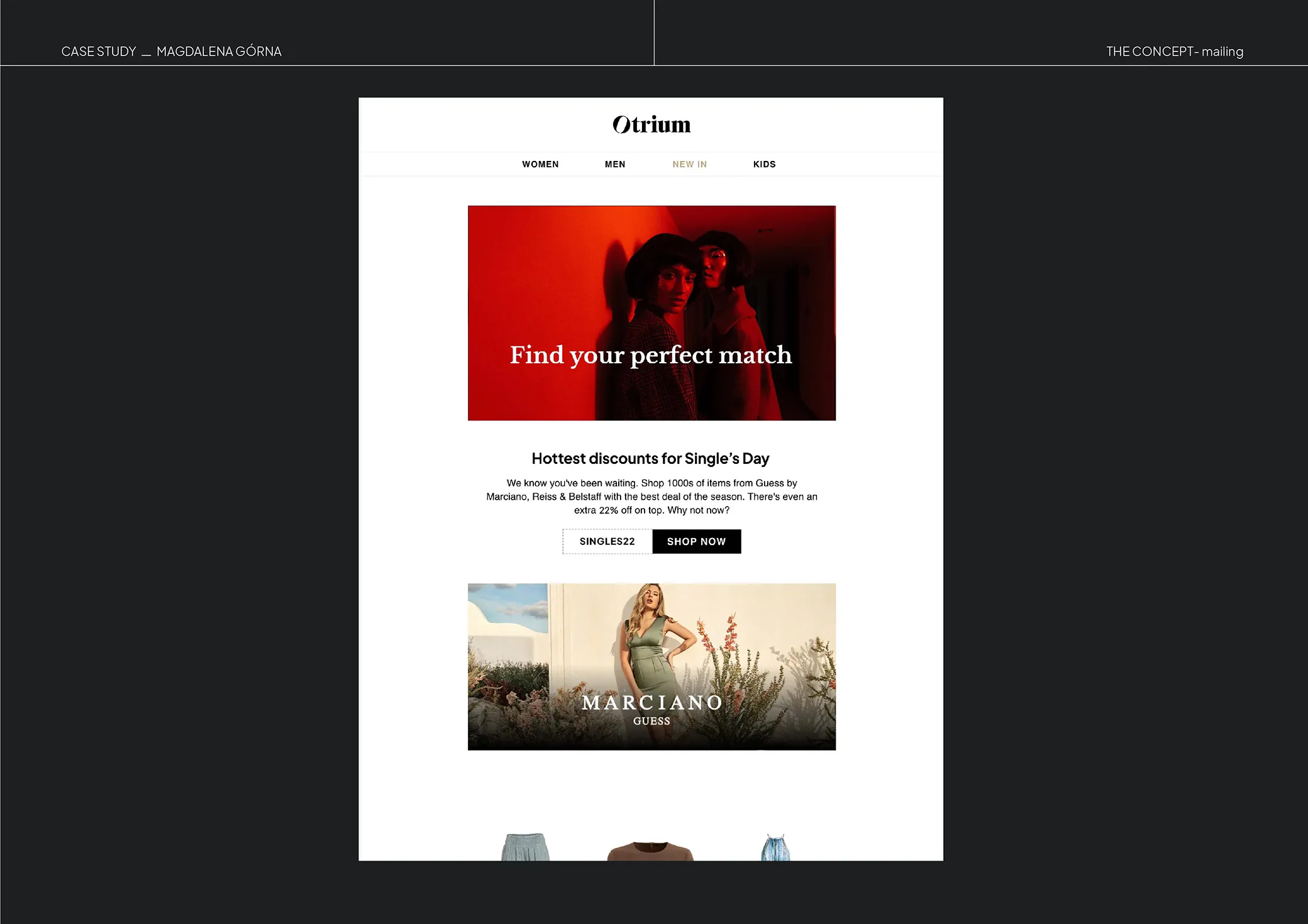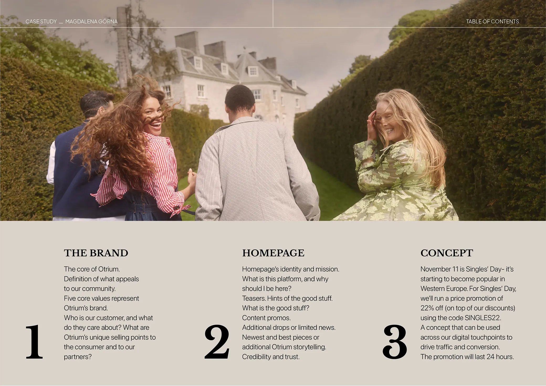 The Otrium brand offers designers clothing in an outlet system. By selling archived collections, they can offer discounts of up to 70% and, at the same time, minimize the negative environmental impact by putting collections back into circulation—a win-win situation. The object of this project was a sketch of the Singles' Day campaign, on which additional promotions were available along with optimizing homepage for mobile viewport.
