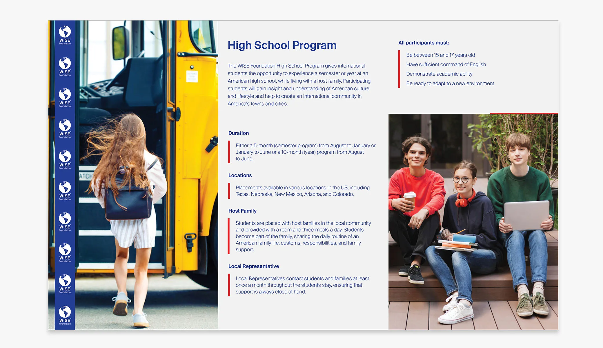 Designing for a foundation offering international student exchange is a task that requires an extra dose of empathy. At first glance, it is a simple task since the recipients are a strictly defined age group. However, these are young people from different parts of the world with entirely different cultural backgrounds and diverse experiences. Therefore, with each design decision, it was necessary to think twice about whether the message would be understandable and clear for everyone and whether we do not use mental shortcuts that are familiar only to a specific part of the world.